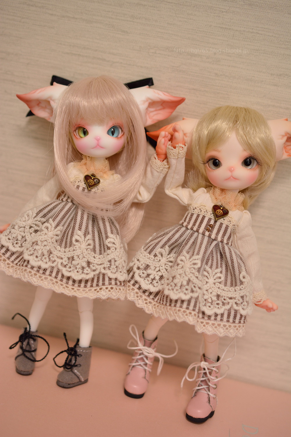 ドール(左):Mini Kitty [ピンク肌] 桃香