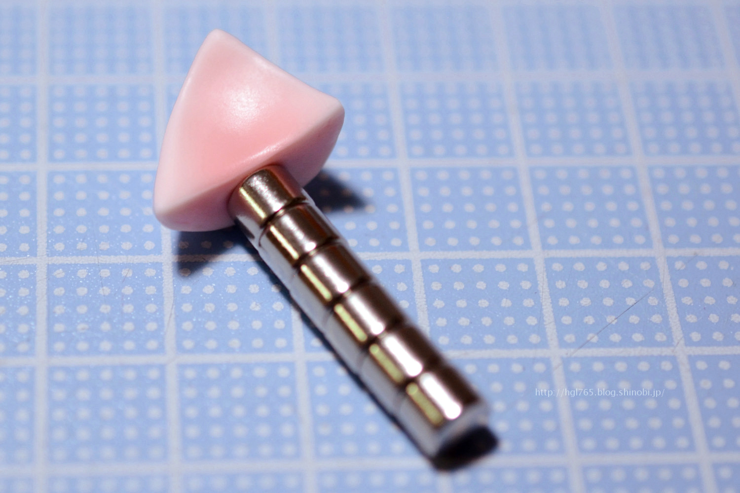 発送された次の日には届いたので、さっそく装着…したかったのですがミニキティの頭側の磁石と極が合っておらず反発しまくる。