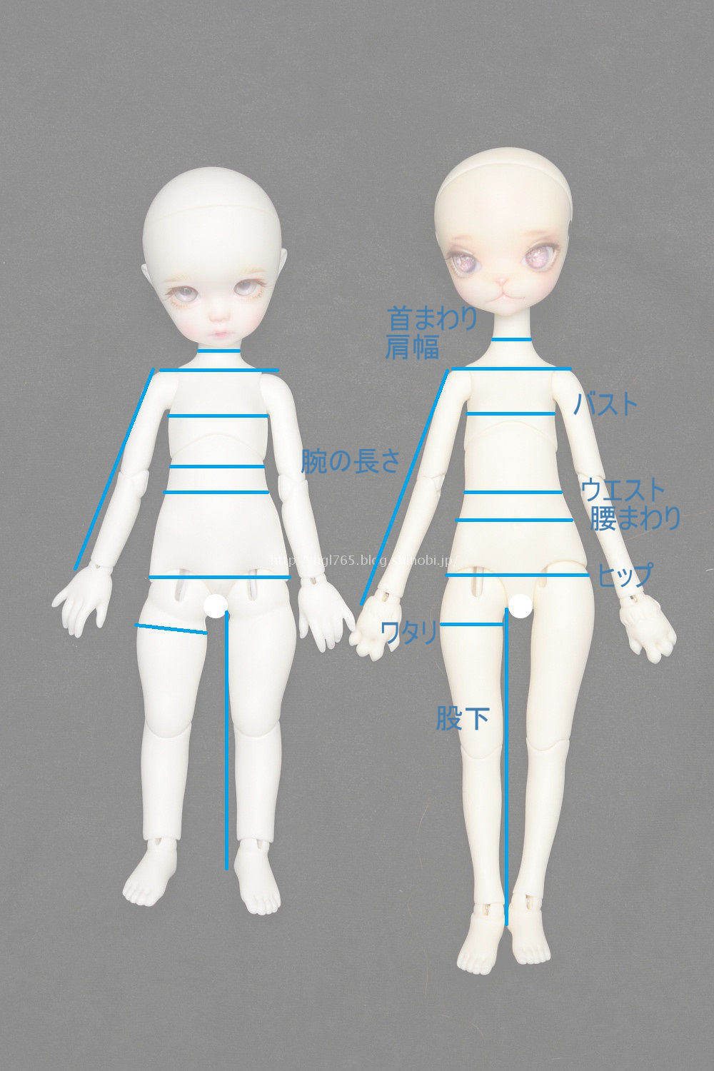 手足はミスキティのほうが長いけど腕は数字ほどの差は感じないので測り方が違っていそう。