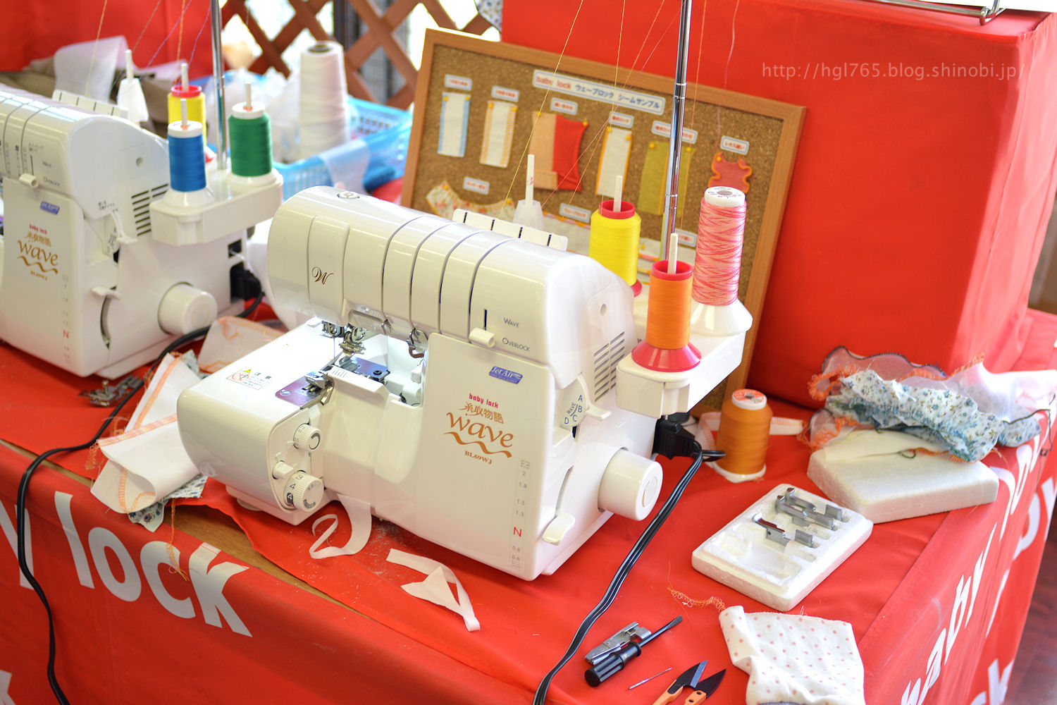 今回、ミシンメーカーのJUKIさんも出展されていて、ロックミシン(糸取物語wave)を触らせてもらいました。前々から欲しくはあったのですが、これはすごい機械だー!ますます欲しくなりました!